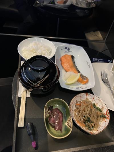 コンフォートクラス 軽食が出ました。バンに肉がはさんであり、味は食べれ...