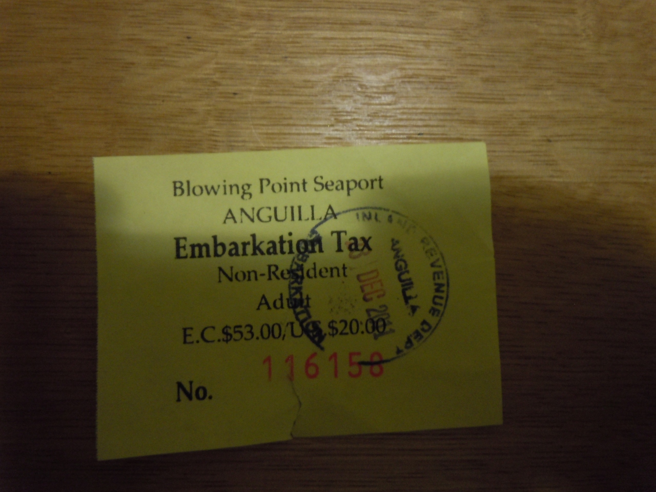 アンギラからフェリーで出国する際1人20US$かかります。これは紙幣で払う必要があります。セントマーチンのマリゴまでは1人15US$です。