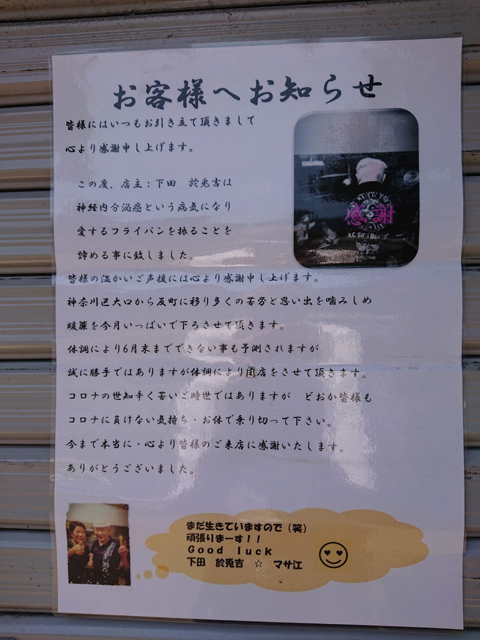 コロナの影響で閉められているのだとばかり思っていましたがご病気であったとは。