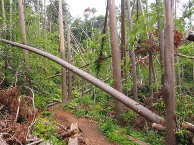 倒木は伐採が進んでおり、それほど危険と思われる場所はありませんでしたが、獅子舞方面は未確認。朝比奈の切り通し方面は倒木により通行できない様子。