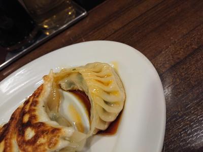 餃子はヒダが少ない方が美味い、とテレビでどこかの餃子屋の主が言っていたがこちらはしっかりヒダがある。
