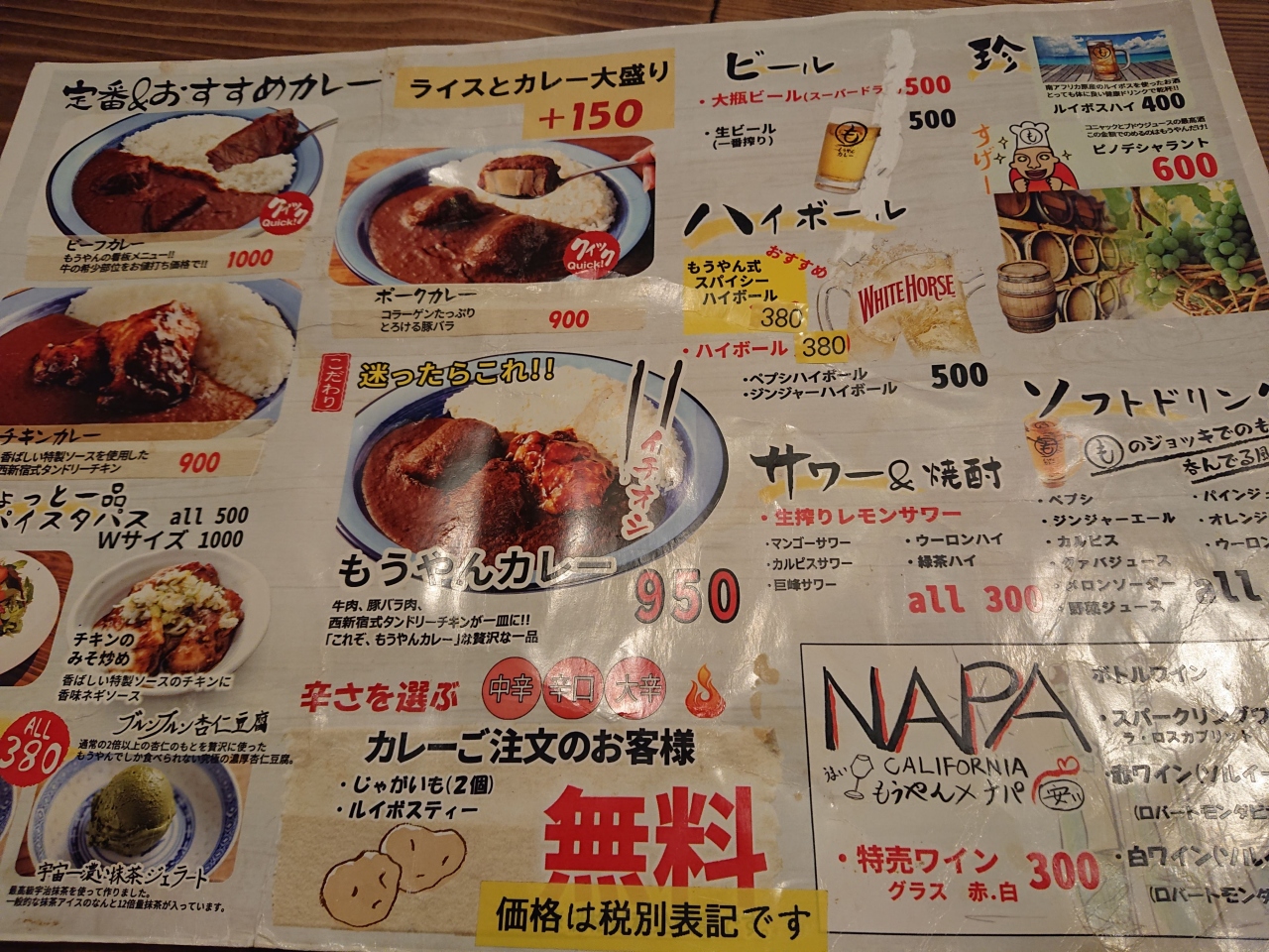 もうやんカレー、本店は大手町ですかね。試しに食べてみました。