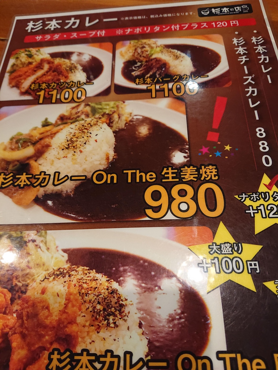 うまい具合にカレーと生姜焼きの杉本の店という一風変わった名前の店を見つけて入店。
