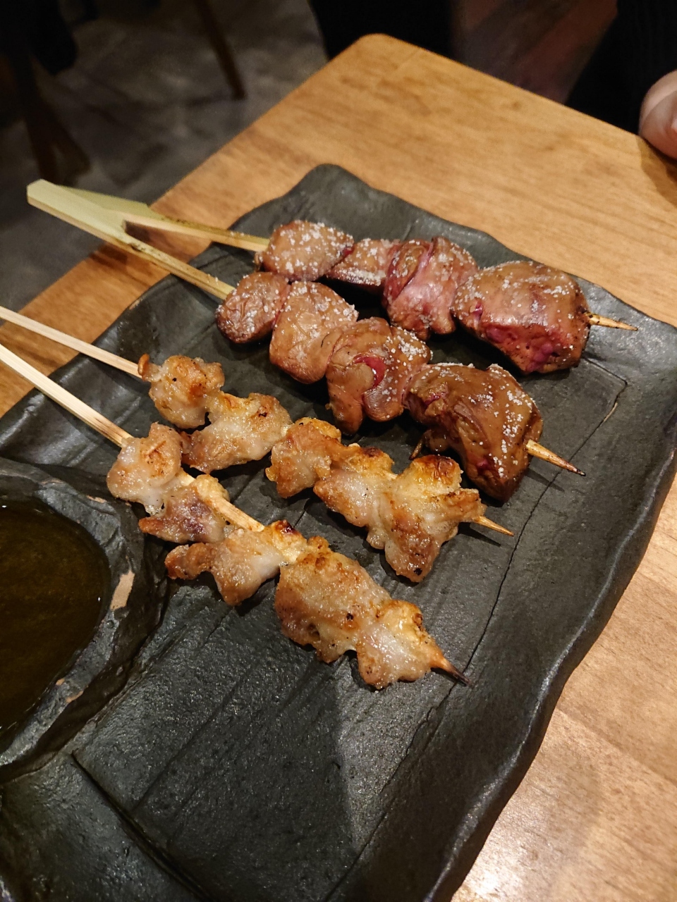 席数5に客が三人。店員が三人。前回も思ったことだが火の入れ方がとてもお上手。焼きおにぎりがお見事だった。もっとも焼き鳥は良いけれど焼きトンは今一つ。- 旅行時期