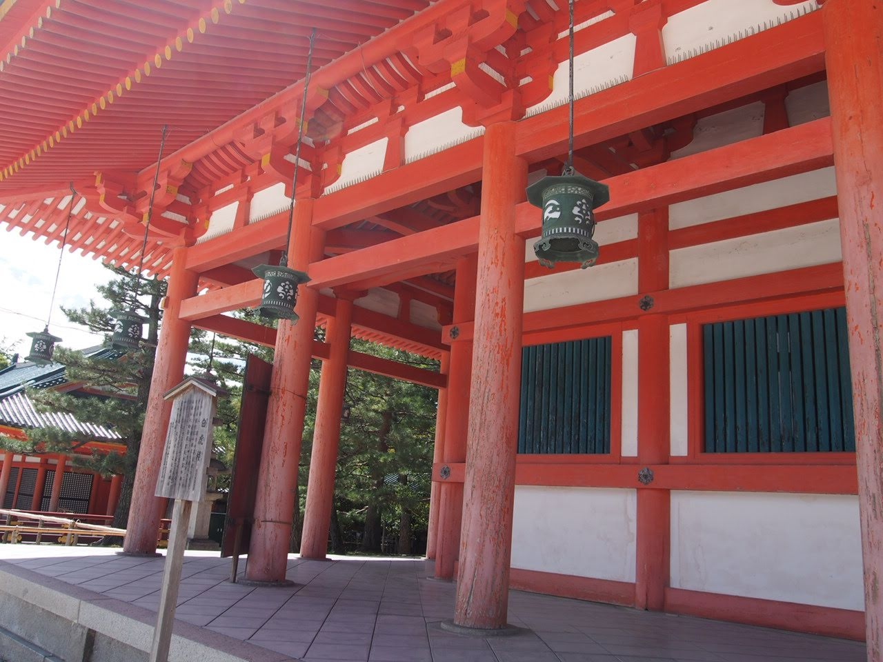 平安京は北に玄武、東に蒼龍、西は白虎、南は朱雀の四神が護っていたと伝えられています。平安遷都自体が怨霊やら政変やらのきな臭い事情が絡んでいると言われていますから護りも厳重にしたことがうかがえますが、この白虎楼はその平安京の朝堂院の様式を模したものとされます。尚、神苑にはこの白虎楼を通って入ることになります。