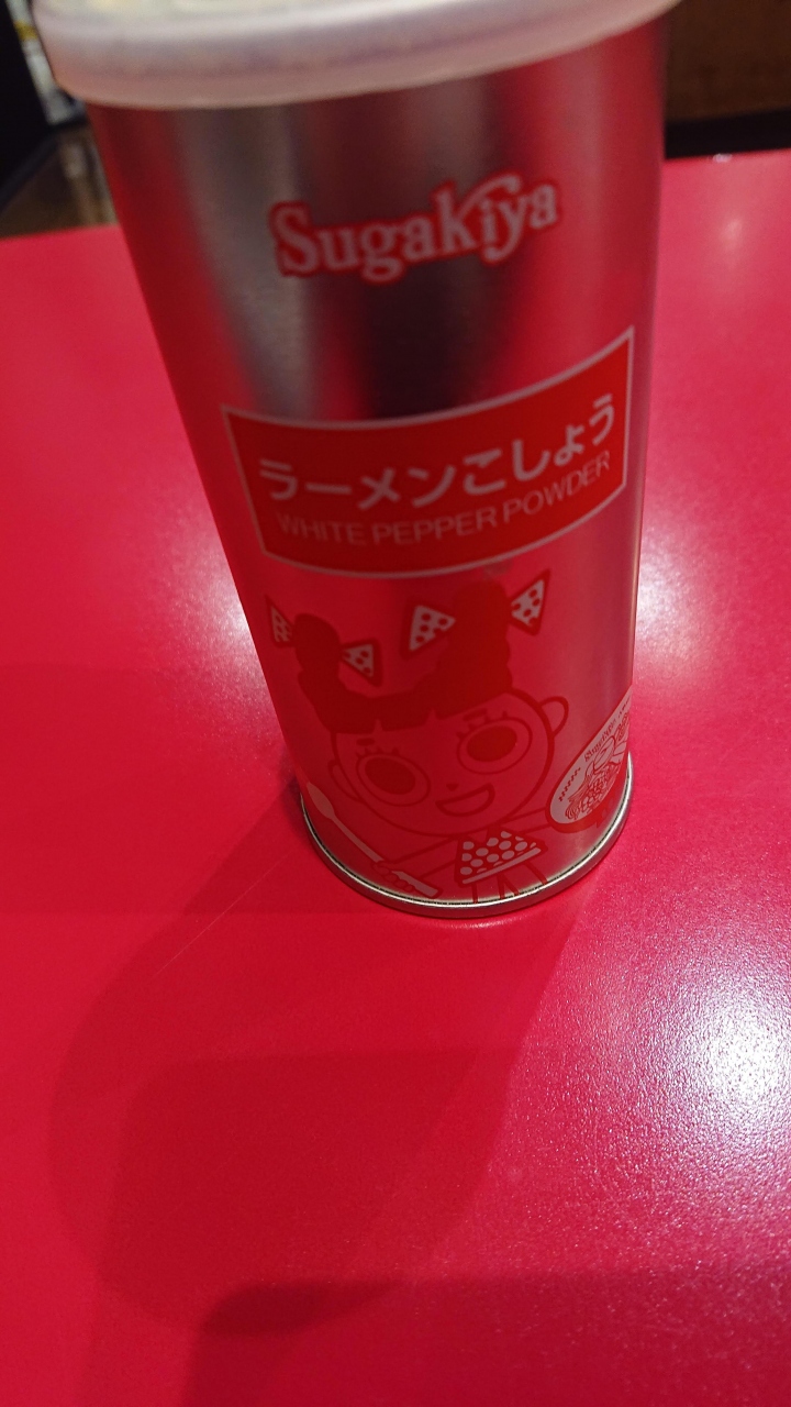 スガキヤと言えば名古屋人のソウルフード。他県民にはちょっとなじみにくい白いスープのラーメン、と認識していたけれどなんだか知っているスガキヤと違う。スガキヤをまねた店かと思いながら醤油ラーメンを注文し、胡椒を見て納得。