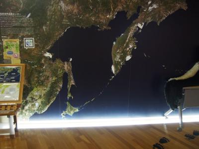 羅臼のビジターセンターにあったシャチの骨格のような迫力のある展示物はありませんが、アリューシャン列島を含む地図には目を奪われました。