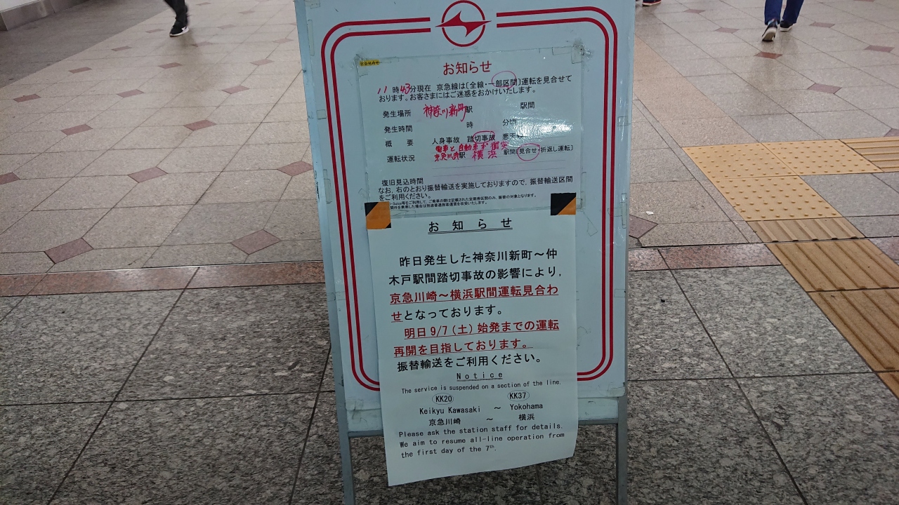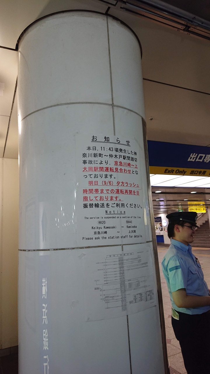 昨日、2019年9月5日の昼頃神奈川新町駅付近でトラックと特急列車の衝突事故がありました。横浜観光中でお困りの方もいらっしゃるかと思いますので昨晩と本日9月6日の横浜駅の永久改札付近の画像をUPしておきます。
