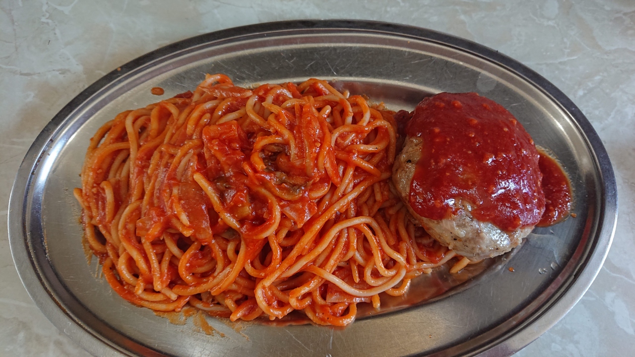 頼んだものはハンバーグスパゲティ。郷愁をそそる味。