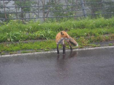 後で聞いたことですが、自然環境の厳しい知床に住むキツネは、ウトロや網走の街に住み栄養豊かな野良キツネと異なり、痩せているためついつい、エサをあげたくなる人が多いのだとか。