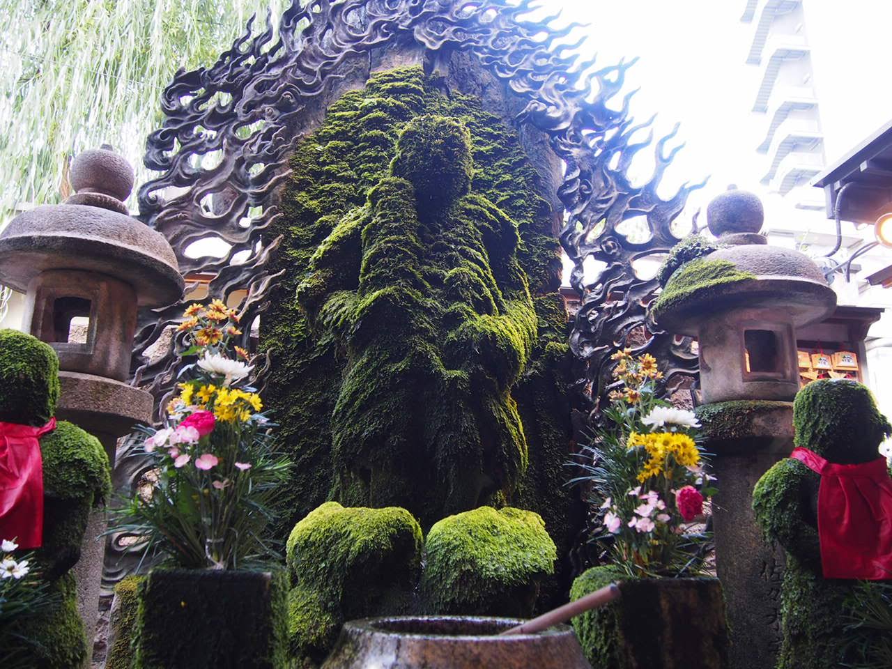久しぶりに訪れた水かけ不動は、その横の灯篭まで苔が張り付きちょっとびっくり。