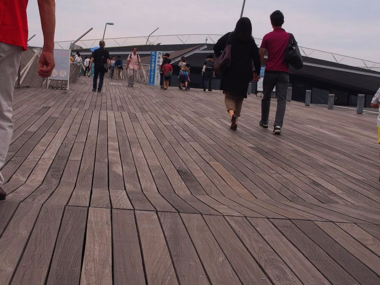 横浜を案内する場合、赤レンガ倉庫、中華街と共に必ずコースに組み込むのがここ横浜港大さん橋国際客船ターミナル。