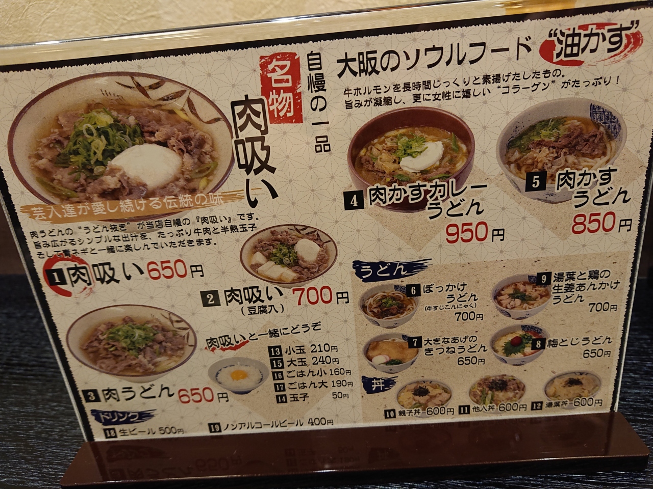 食欲がなかった吉本の芸人が肉うどんのうどん抜きを注文して、それが名物となった。本店は営業時間が短くて行列ができるが、NGKの1Fにあるこちらは、並ぶことなく名物がいただける。