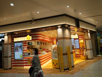 オリジナルグッズやチキンラーメンも販売されているが、他の店舗に比べて空いている。黄色で統一された当店はエキマルシェの中でこの店だけがちょっと浮いているように思える。