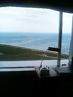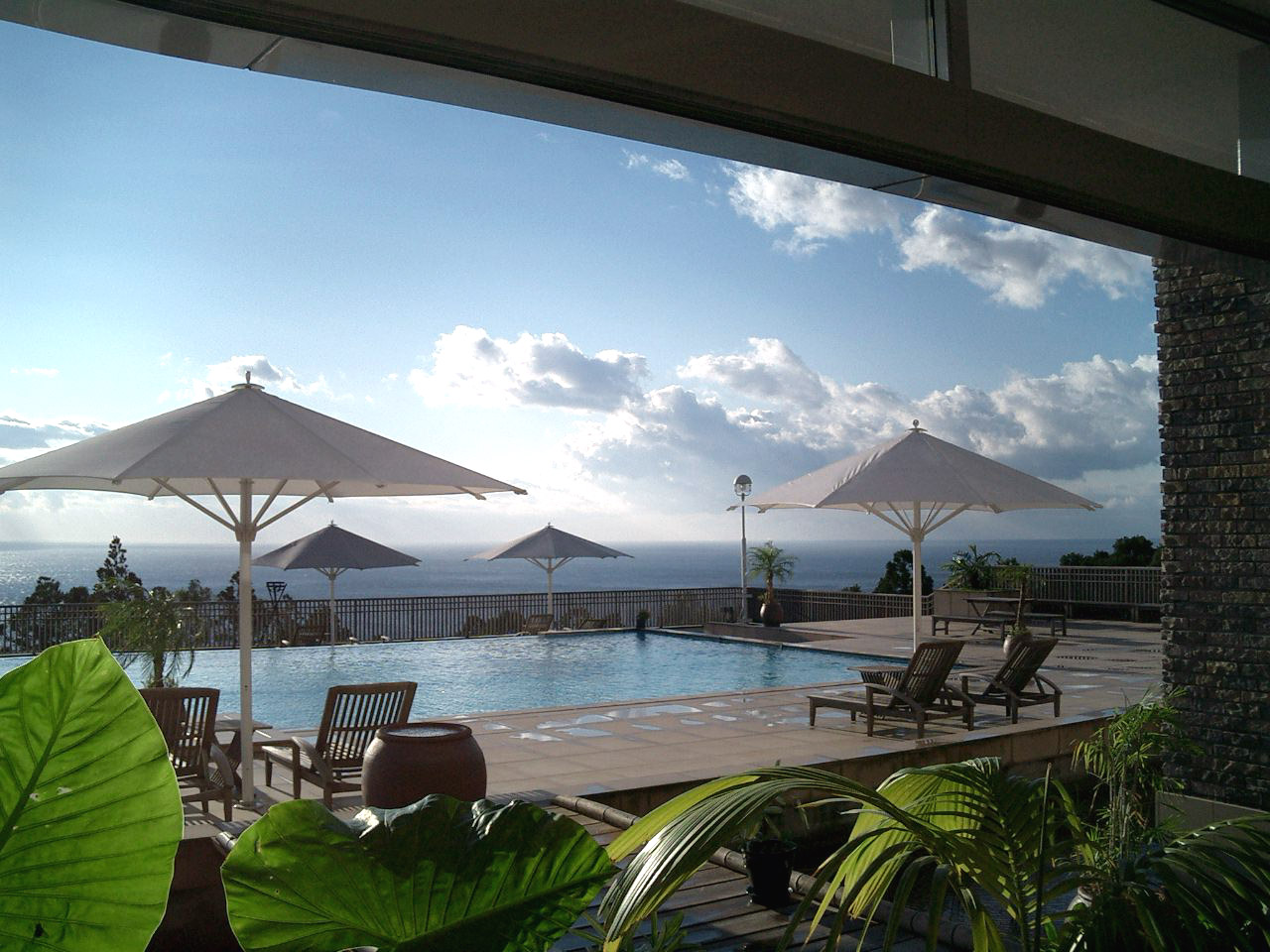 ロビーに入ると正面が、ステキなプールとプール越しの海という最高のロケーション!冬だったのでもちろん泳げないが、暖かい季節ならプールサイドでのんびしたら気持ちいいだろうなと思った。