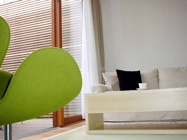 コンラン卿デザインの東館パビリオン。白を基調としたとてもシンプルではあるが、北欧っぽい温かさを感じるインテリア。自宅リビングのインテリアの参考になった(笑) コーヒーミルとコーヒー豆がおいてあり、自分で入れたてのコーヒーを作ることができる。足りなくなったらもちろん豆も補充してくれる。スローライフ満喫という感じ。部屋のバスルームには、タオルウォーマーがついていたりと細かい気遣いが。