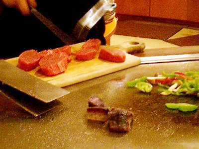 カジュアルな雰囲気ですが、目の前の鉄板でスタッフがステーキ等を焼いてくれます。私たちがオーダーしたのは、 3,800円の特上ヒレステーキのコースでお肉はひとり180グラム。パフォーマンスなどは特にありませんが、お値段もなかなか手ごろだし、お肉もジューシーで美味しかったです。