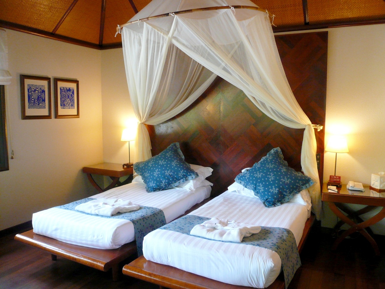 メリディアン・イルデパンは、島で唯一の5つ★ホテルです。スィートバンガローは、プライベートデッキ、リビング、ベッドルーム、広いバスルームの構成。