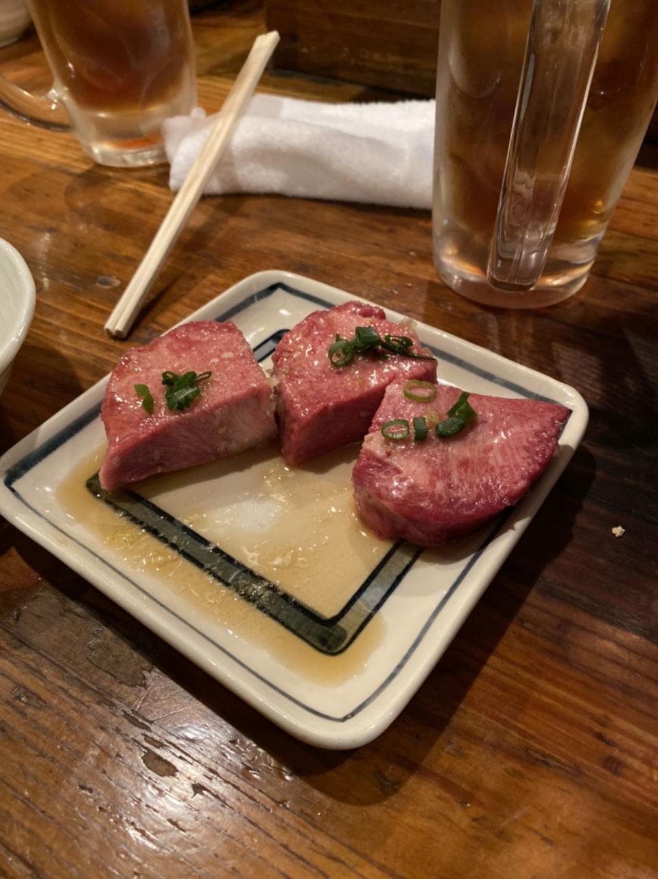 烏龍茶2つ・ホルモン・トロミノ・厚切りタン・麦ごはんを注文。