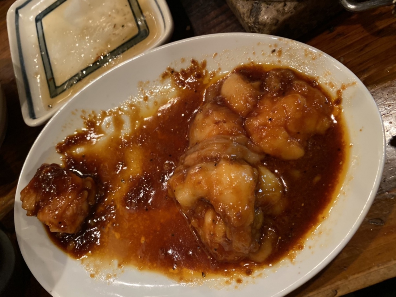後からよく考えたのですが、あの最初の皿にはトロミノと丸腸が混ざって入っていたような気がしています。