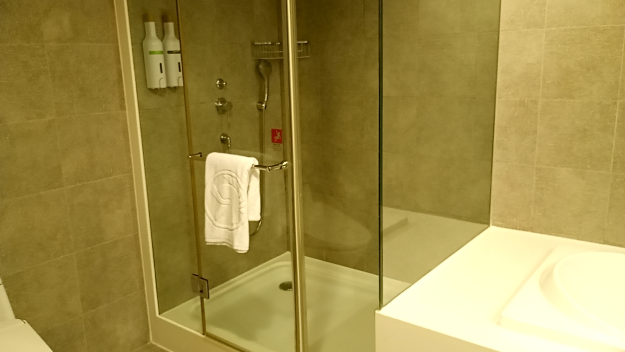 - シャワーブースとバスタブに微妙な距離がありました(笑)