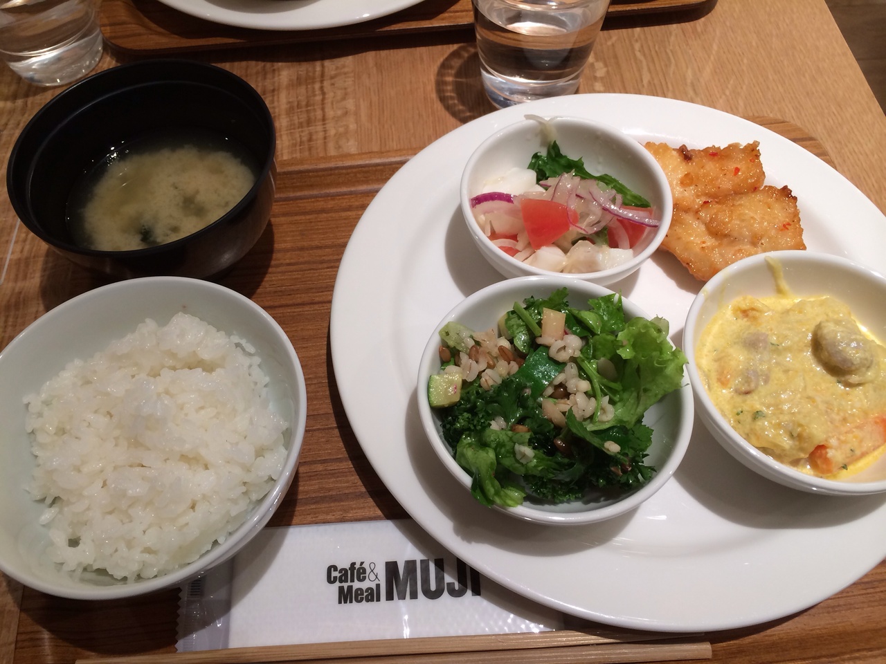 ご飯の種類と、味噌汁かスープ、おかず数種類を自分で選びます。
