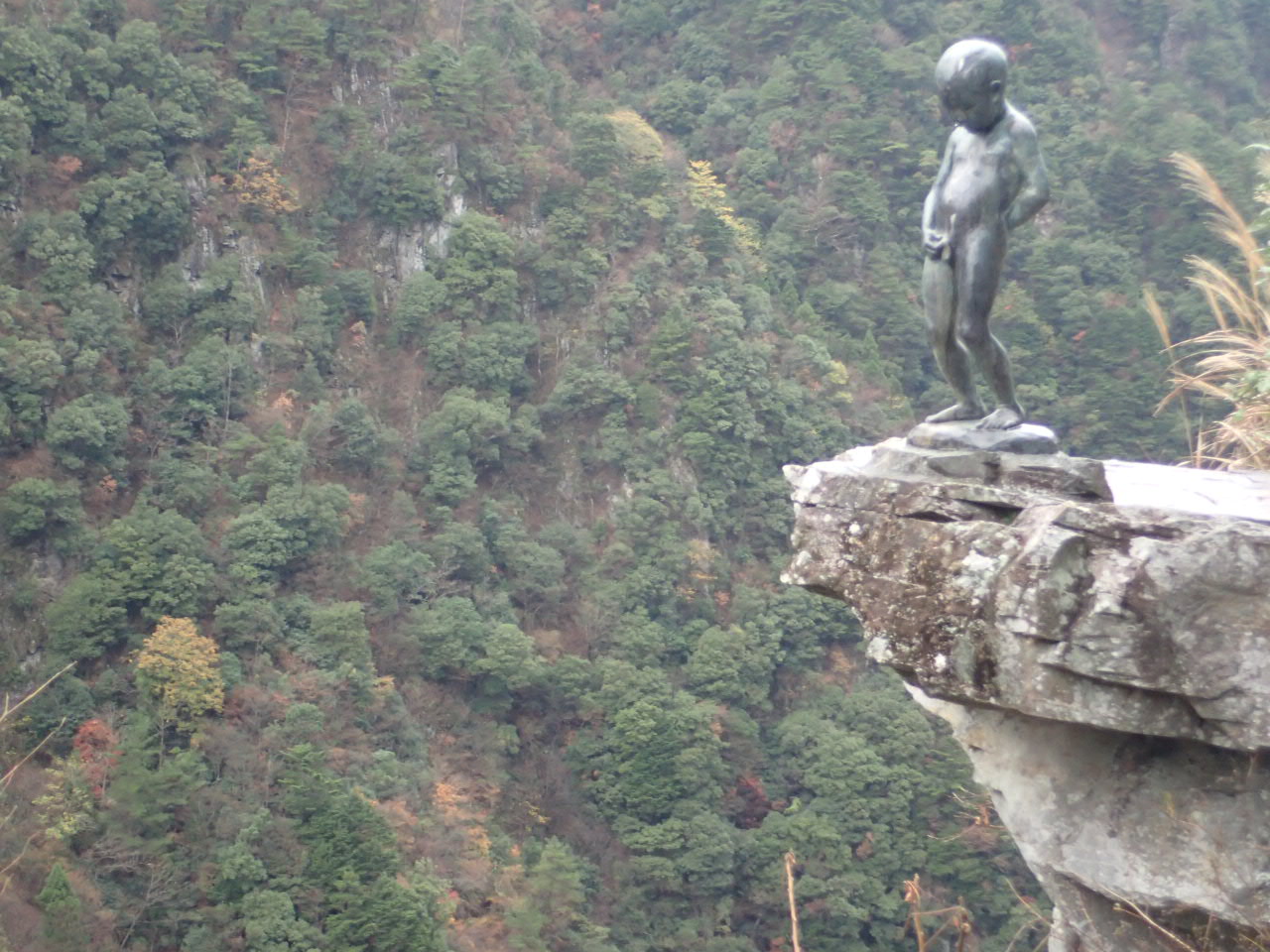 西祖谷の奥地にある小便小僧です。断崖絶壁の上に立っており、見るだけでも怖い場所に立っています。自分がもしここしか場所がなかったらと思うと恐怖でいっぱいです。
