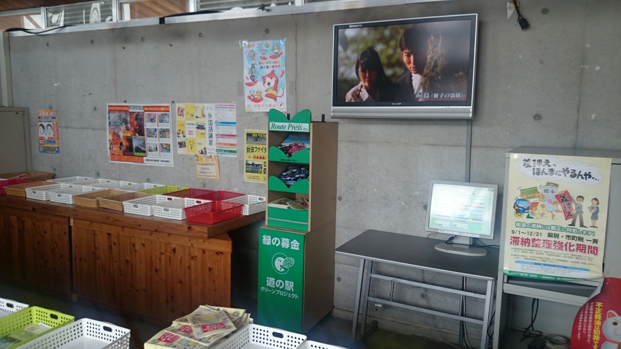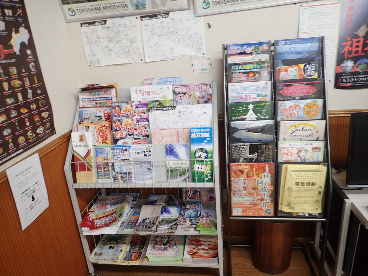 西祖谷の町中の手前に道の駅にしいやがあります。建物内は小さな売店及び観光案内のパンフレットなどがあります。ここでよく見る光景は、売店の人が観光情報を丁寧にかつわかりやすく観光地までの案内をよくしています。山道なので、ひとつ間違えたらとんでもない所にいきますので、不安な方はこちらで情報収集を。