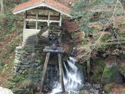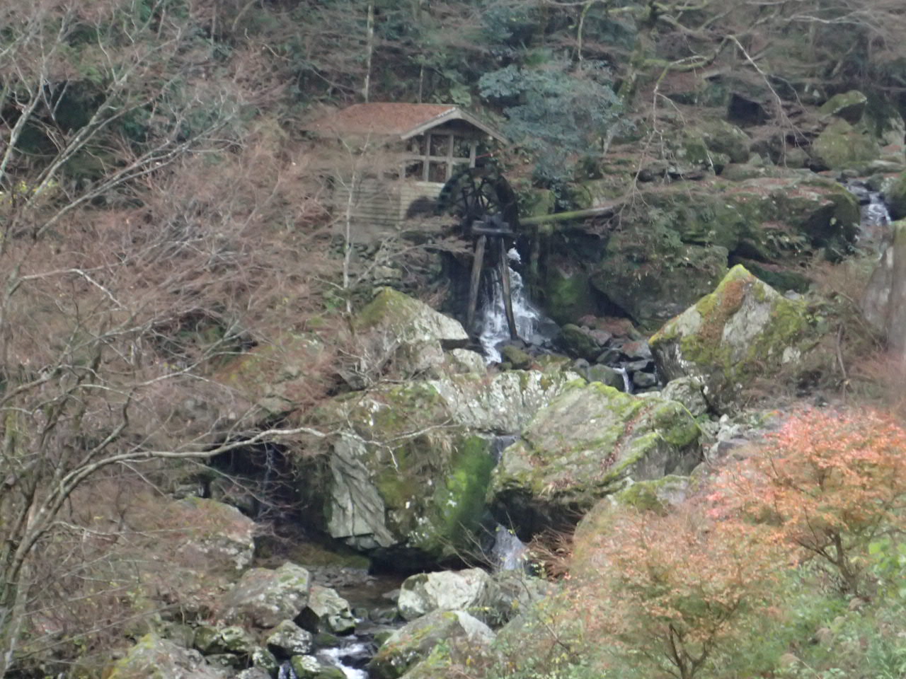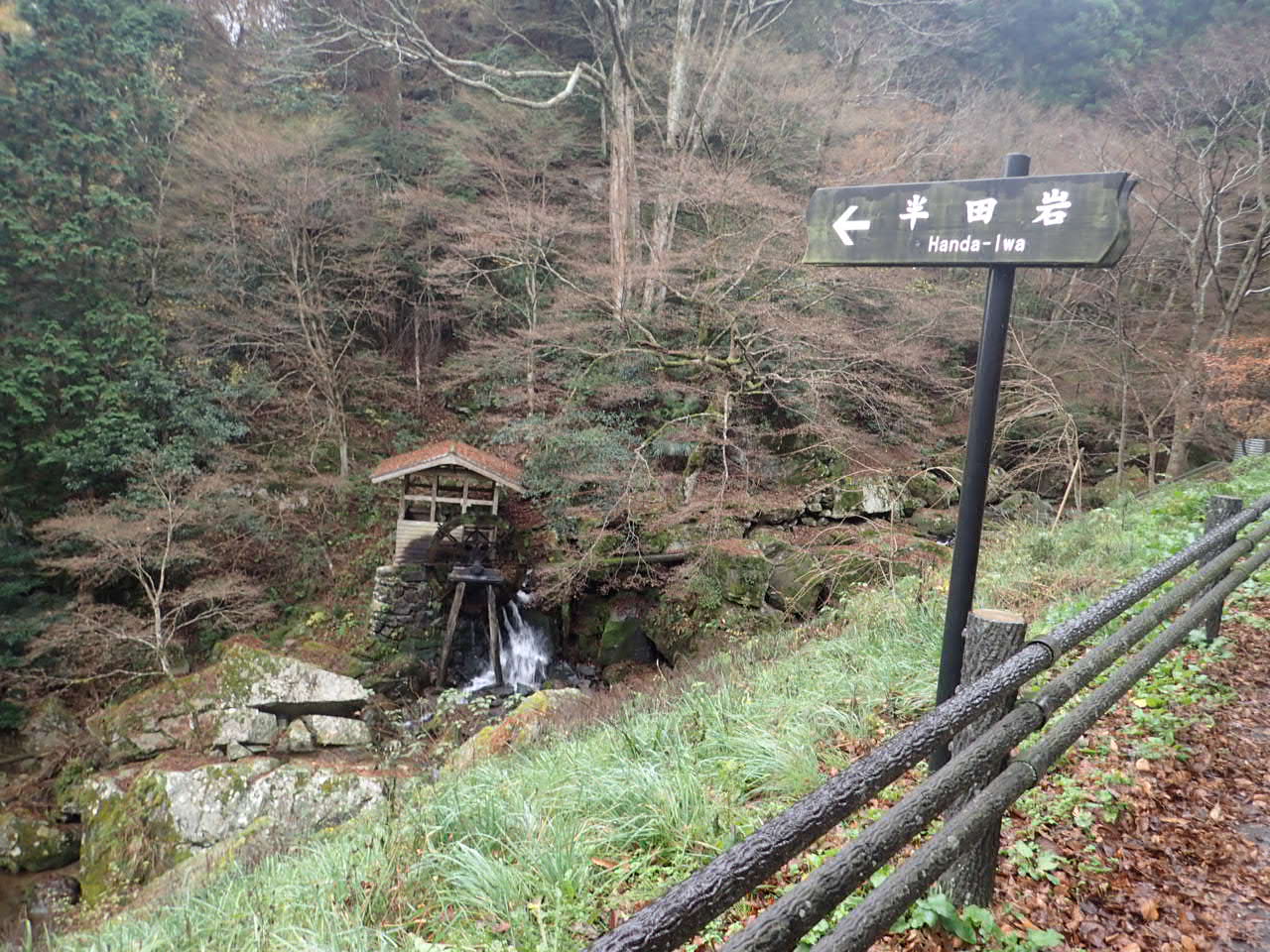 半田岩の所には水車もあり、水を勢いよくまわしています。初めはどれが半田岩なのかわかりませんでしたが、近くによって見てみると風情がありいい雰囲気です。- 旅行時期