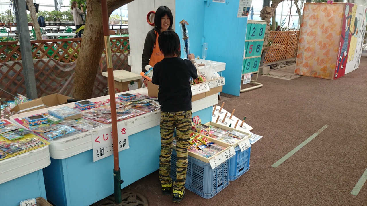 子供向けにくじ引きや射的など楽しめる様になっています。温室内なので冬でも暖かく家族連れで行くにはいいと思います。- 旅行時期