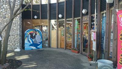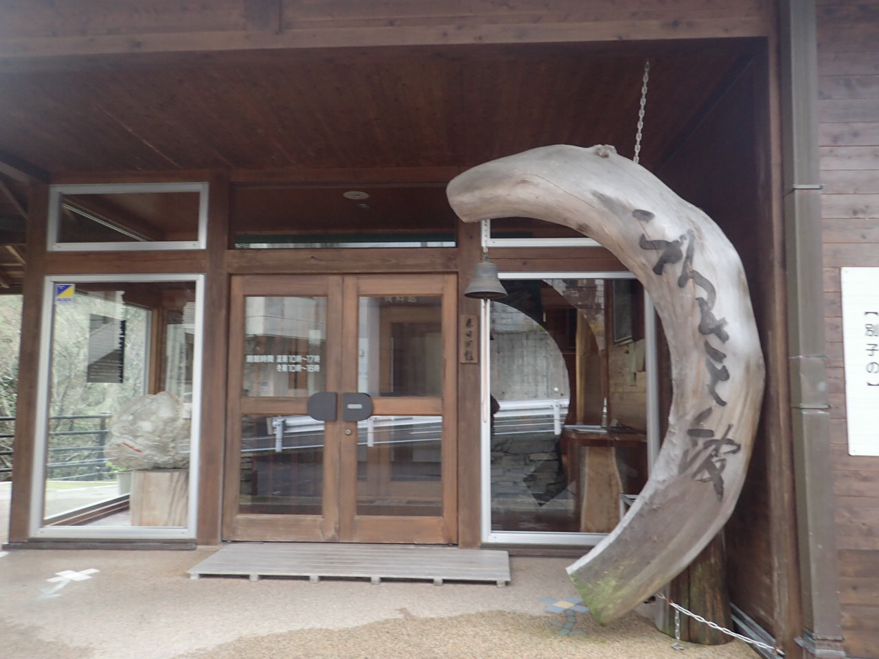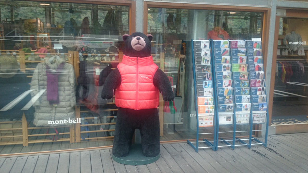 モンベルの入口には、熊のぬいぐるみがどんと立っていまし。大歩危小歩危は、ラフティングの盛んなところで夏になると、関西の方からもたくさんきています。ラフティングだげでなく、山登りやカヌーなどいろんな体験ができます。