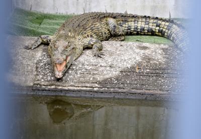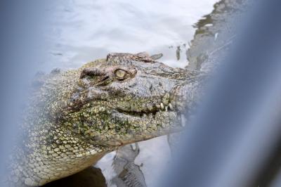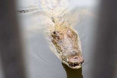 ワニの檻の外から何気なく写真を撮ろうとしたらスーッと近くに寄って来ました。