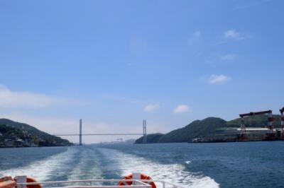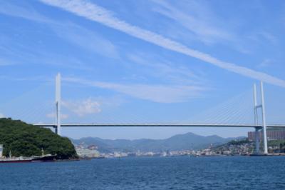 軍艦島への往復で下を通りました。夜間ライトアップがとても綺麗でした。