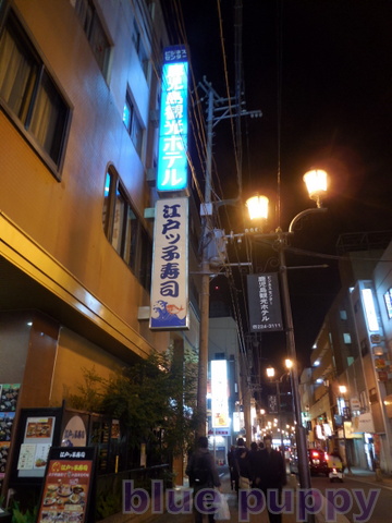 天文館のアーケードを通り”むじゃき”を通り過ぎ、ファミリーマートと交番のある交差点を渡ります。