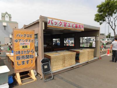 写真にある販売所でパック入りの甘エビ(300g、\500)を買いました。