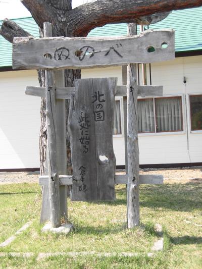駅舎の前に倉本総監督の「北の国からここに始まる」と言う記念碑があります。