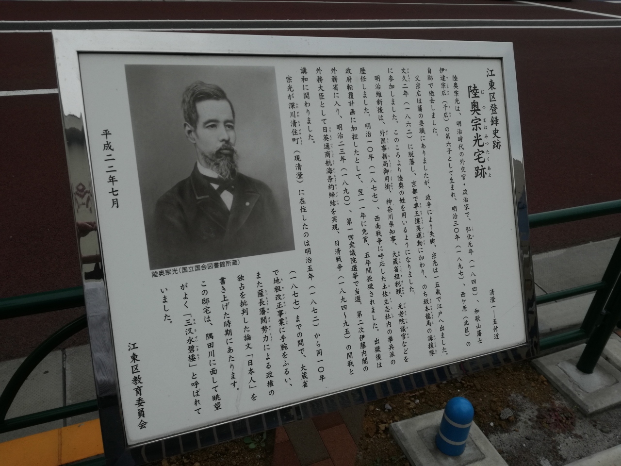 小さな石碑に功績の内容が書かれています。