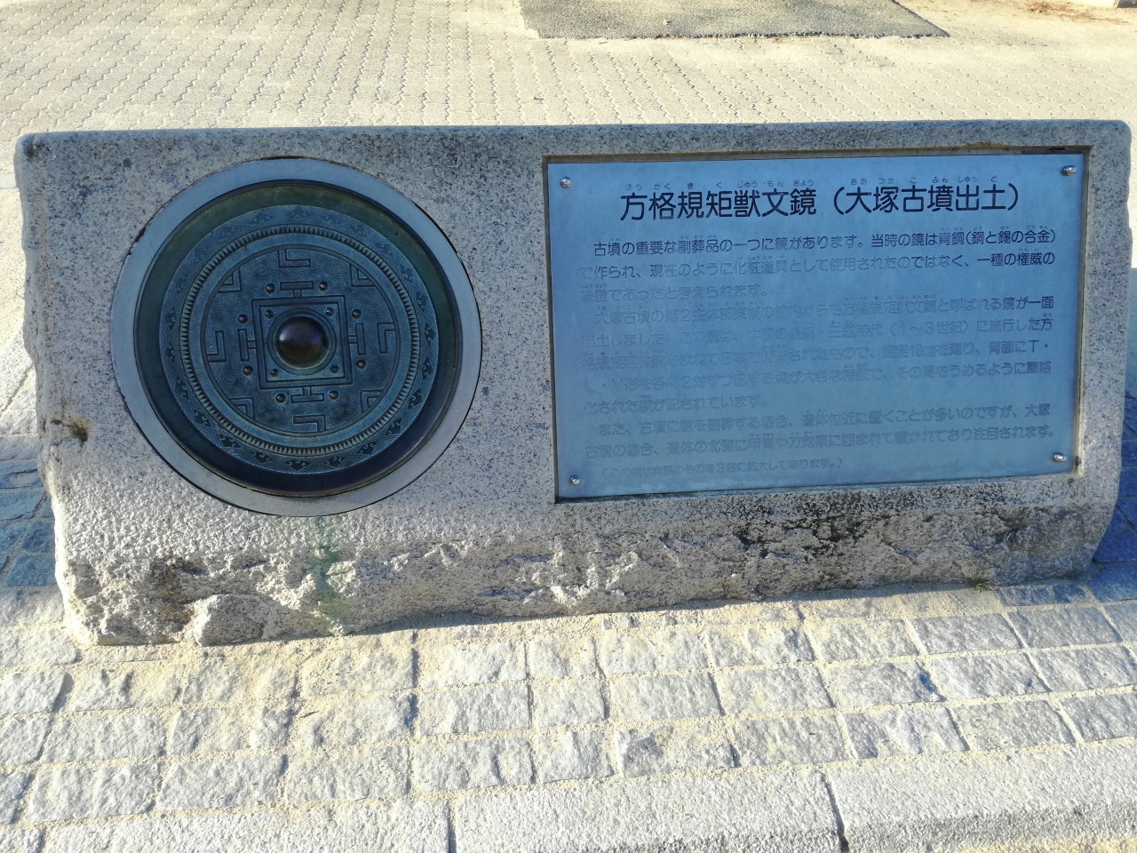 展示されている鏡のサイズは、「実物の3倍」と石碑に書かれています。