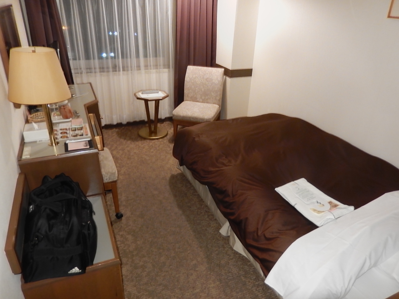 岡山駅から岡山城方面へ歩いて15分ほどにあるビジネスホテルです。思ったより歩いたので、帰りは路面電車を利用しました。路面電車の駅はホテルからすぐそばにあります。岡山駅から歩いて向かうとき「どこかで夕食を」と思いながら歩いていたら、途中からほとんど入りたいような店がなくなってしまったので、ホテル地下の中華料理店で定食をいただきました。ボリュームがあり、おいしかったです。