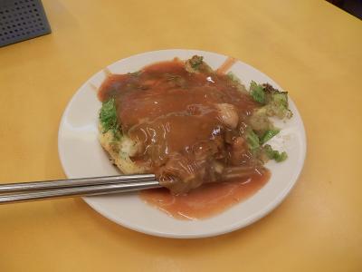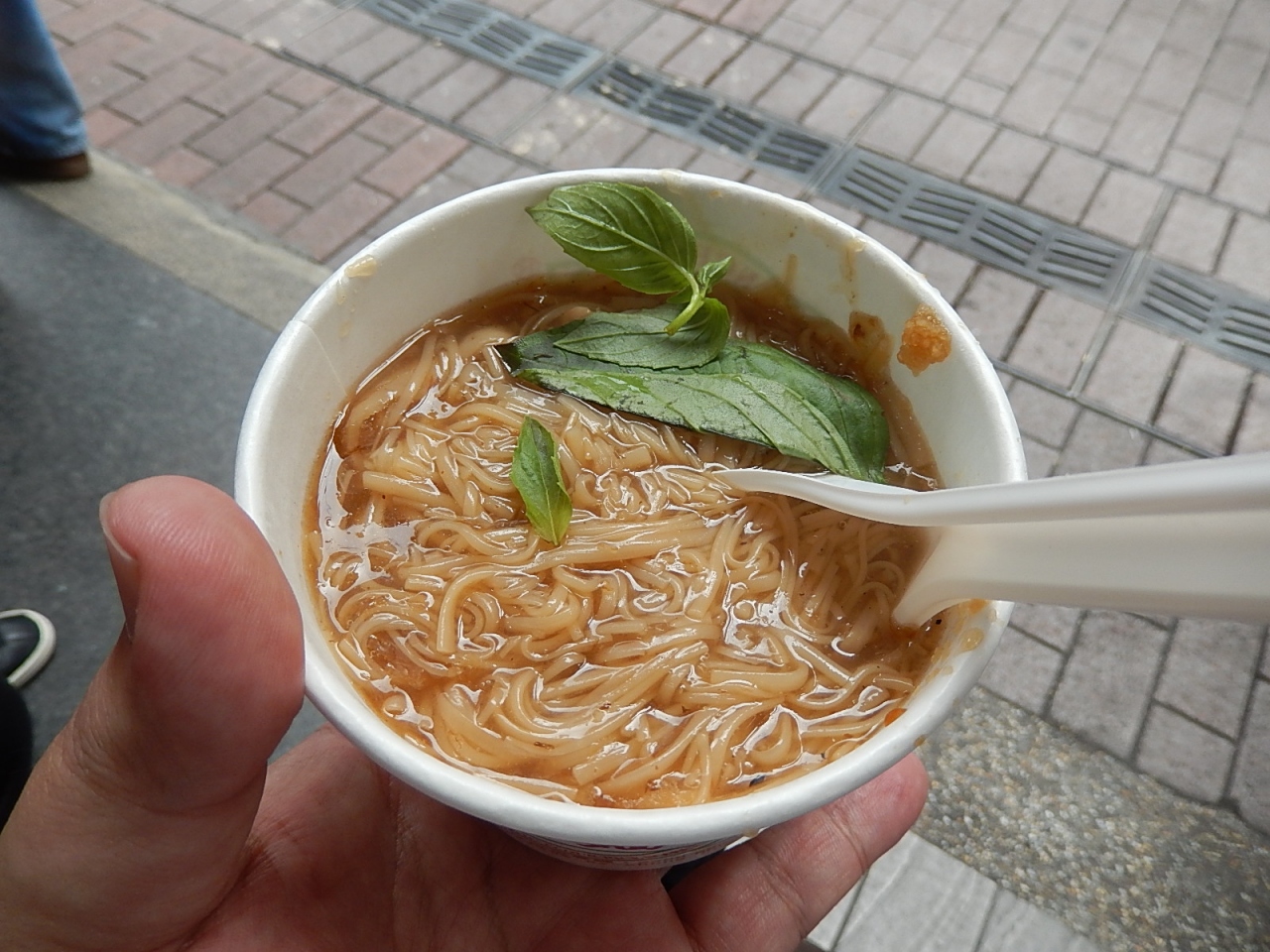 前回に来たときに、一緒になった日本の方から絶賛、薦められて食べた思い出の味です。「もつが煮込まれたカツオ味のそうめん」なのでしょうが、これは一度食べなければ、味が伝わらないと思います。日本では食べられない味のひとつですよね。食器が緑のプラ食器から、使い捨ての容器に変わっていました。