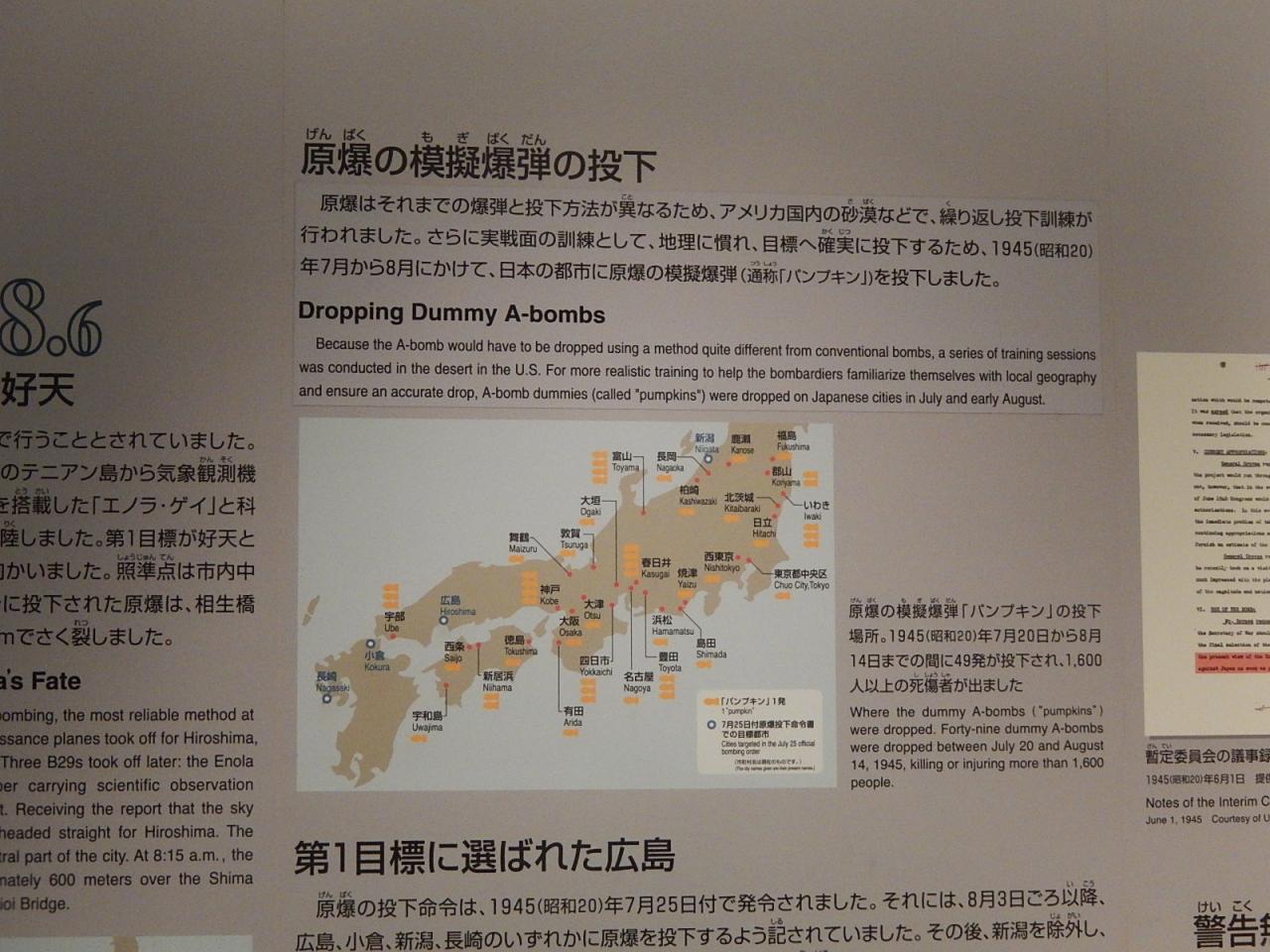 パネルを見るまで、自分の住んでいる町に原爆の模擬爆弾(パンプキン)が落とされたなんて全く知りませんでした。- 旅行時期