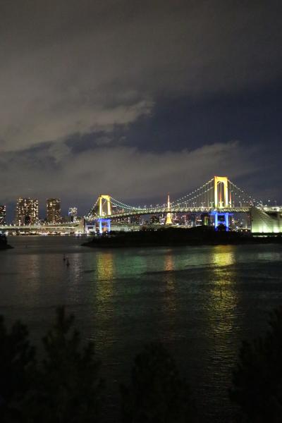 お台場の夜景スポットといえばアクアシティ付近の展望デッキ。レインボーブリッジや東京タワーも見られることができ、冬はイルミネーションもあるため多くの人が景色を楽しんでいました。ただ冬は相当寒いので防寒対策を忘れずに