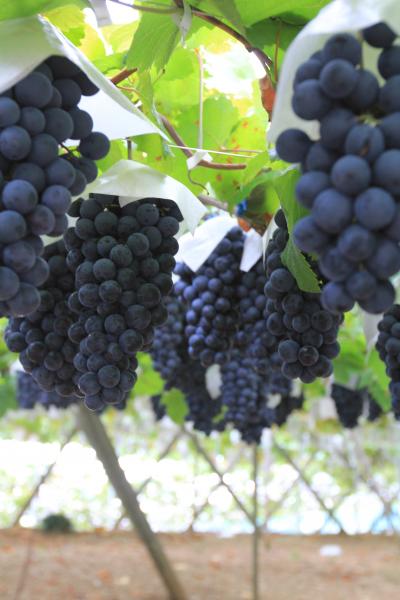 親子3代に渡るこだわりのぶどう栽培、常に新品種に目を向け、色鮮やかで味わい豊かなぶどうを20種類以上栽培しているぶどう園でぶどう狩りをしてみました。ぶどうの丘の目の前にあるため、たまたま足を運ぶ人も多いかと思います。私達が訪れた時は旬の時期も終わりの時期だったようでぶどうもほとんどなっていませんでした…。時期を外さなければいい場所ですね。