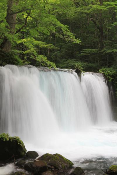 青森県十和田市十和田湖畔子ノ口から焼山までの約14kmの奥入瀬川の渓流で国の特別名勝および天然記念物に指定されている十和田八幡平国立公園に属する名所です。渓流沿いには遊歩道が整備されており、紅葉や新緑の季節には多くの観光客が足を運びます。渓流沿いにはいくつもの滝が点在し、この道は「瀑布街道」とも呼ばれています。奥入瀬川の流れの景観を楽しめる阿修羅の流れや三乱の流れ、白銀の流れなどもあります。森林浴と水のせせらぎに癒されながら遊歩道を散策する人達が多く見られました。