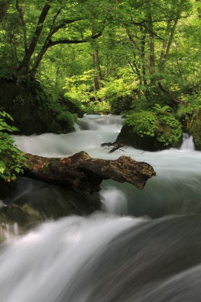 青森県十和田市十和田湖畔子ノ口から焼山までの約14kmの奥入瀬川の渓流で国の特別名勝および天然記念物に指定されている十和田八幡平国立公園に属する名所です。渓流沿いには遊歩道が整備されており、紅葉や新緑の季節には多くの観光客が足を運びます。渓流沿いにはいくつもの滝が点在し、この道は「瀑布街道」とも呼ばれています。十和田湖への魚の遡上を阻止してきた魚止めの滝でもある銚子大滝をはじめとして雲井の滝や九段の滝など大小様々な景観を楽しませてくれる滝の他、奥入瀬川の流れの景観を楽しめる阿修羅の流れや三乱の流れ、白銀の流れなどもあります。森林浴と水のせせらぎに癒されながら遊歩道を散策する人達が多く見られました。