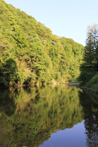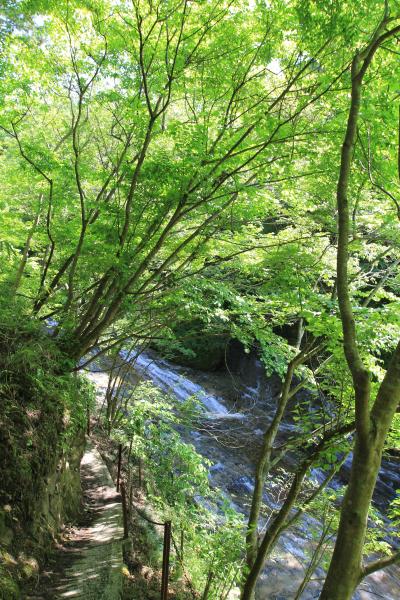 千葉県夷隅郡大多喜町から市原市に流れる養老川によって形成された渓谷で春はツツジ、夏は渓流沿いでの水遊び、秋は紅葉と四季折々の顔を見せてくれる観光名所です。特に秋の紅葉は有名で千葉県の紅葉の名所といえば「養老渓谷」を思い浮かべる人が多いでしょう!渓流沿いは整備された遊歩道があり、紅葉時期に限らずハイキングコースとして利用される方も多く、また渓流で釣りを楽しむ人もたくさんいます。中瀬遊歩道は養老温泉街の中にある、葛藤(くずふじ)駐車場近くの共栄橋付近から養老川沿いに設けられた1.2kmの遊歩道で新緑の季節も綺麗でのんびり散策できました。