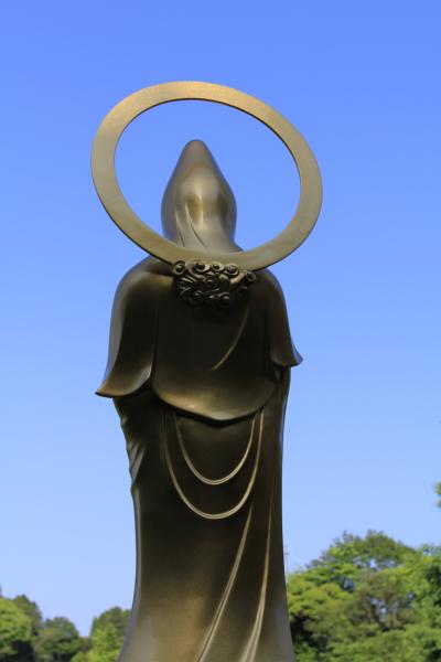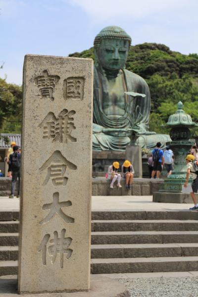 鎌倉のシンボルと言うべき鎌倉大仏、台座を含め高さ13.35m、顔の長さ2.35m、目の長さ1m、耳の長さ1.9m、重量約121tと国宝の中では2番目の大きさを誇ると言われています。5年の歳月をかけて1243年(寛元元)に完成した当初は木造だったが台風で倒壊し、1252年(建長4)に青銅製の大仏の鋳造が始められたと言われています。かつてはこの大きな大仏を覆う程の大仏殿がありましたが15世紀の大津波により倒壊したため現在は野ざらしにされています。