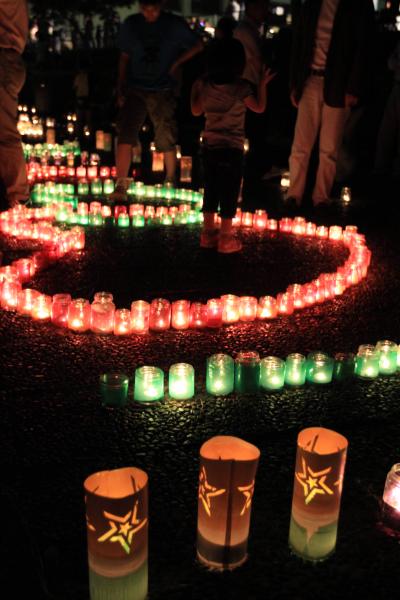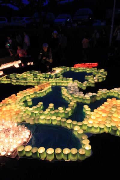 房総のむらや旧学習院初等科正堂や龍角寺古墳群などがありますが観光地としてはマイナーな栄町。購読しているぐるっと千葉に珍しくイベント情報が載っていたため足を運びました。開催場所は栄町役場で周辺にはスーパー等があり到着した時は本当にここがイベント会場なのか!?と思いましたが日没を迎え暗くなってくると盛り上がりをみせてくれました。キャンドルの設置数は少なかったですが混雑せずゆったり見て回ることができ、周辺には露店も出店されていました。2012年のテーマは「エコ」と震災を意識したテーマで今年も節電の季節がもうすぐくるのかなぁと感じさせられました。当日は少し風があったためキャンドルが一部消えてしまうハプニングがありましたが、綺麗な景色と涼しげな初夏の気候にはぴったりな景観でした。規模としては小さめですがこういう小規模イベントを実施して地域の活性化を目指す自治体は応援したいですね。