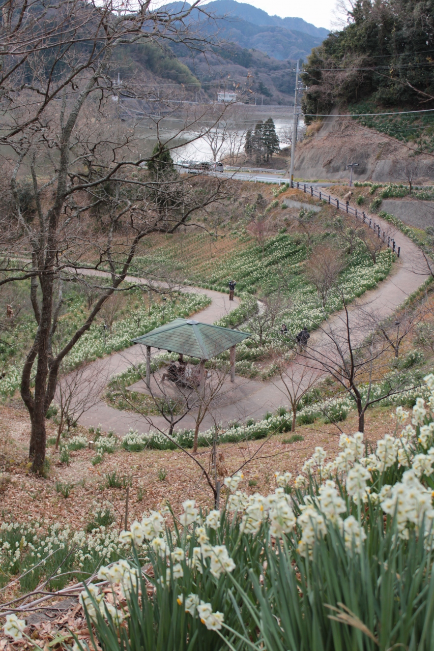 千葉県鋸南町は日本三大水仙群生地として知られ、毎年水仙まつりが開催されています。12/17~1/31まで開催され餅つき大会・ミニ音楽祭・水仙スタンプラリー等の様々なイベントも催されていました。房州の花づくりは、安政年間(1854~60年)、鋸南町の保田地区に咲く日本水仙が元名水仙と呼ばれて船で江戸に運ばれたのが始まりと言われています。現在は越前・淡路と並ぶ日本三大水仙群生地として1,000万本近い水仙を市場へ出荷しています。鋸南町の水仙は他の地域に比して寒暖の差が大きいことから特徴として香りが強く背丈が高いそうです。鋸南町の水仙の名所は江月水仙ロード・佐久間ダム公園・をくずれ水仙郷・谷沢水仙郷など複数あり全て回るにはバス等を利用する必要があります。また佐久間ダム公園付近では夜になるとライトアップもされ幻想的な水仙を楽しむこともできます。今回は佐久間ダム公園とをくずれ水仙郷を散策し一足早い春の息吹を感じてきました。