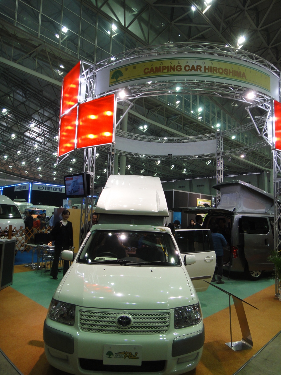 幕張メッセで開催されていたJapan camping car show2011へ行って来ました。一般社団法人日本RV協会が主催するイベントで数々のキャンピングカーのメーカーがキャンピングカーの展示・販売、企業情報コーナー、各種物販、アウトドア用品の展示・販売等が出店されていました。2010年度は入場者数が60,434名と多くの人達が訪れるイベントです。2011年のテーマは車中泊から、キャンプまで。「家族の新しい夢にー」でこれまであまりキャンピングカーに興味がなかった私ですが、展示されている車を見ているとあるとキャンプに行きたくなるような車ばかりでした。普通車に比べて価格が高額なため購入する予定はありませんが、あると便利な車ですね。御当地B級グルメフェスタも開催されておりお腹が空いたら会場内でB級グルメを堪能している人も多かったと思います。長距離ドライブやキャンプが好きな人は是非参加してみていただきたいと思います。